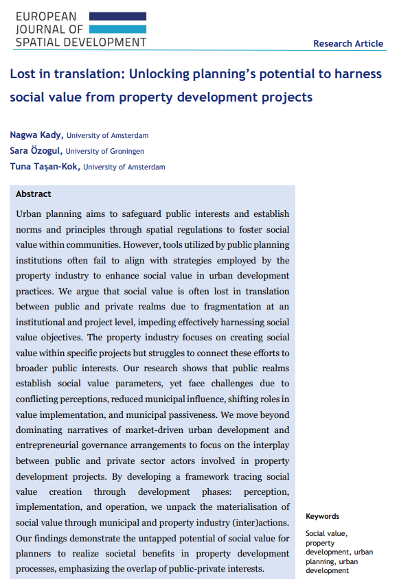 Our article fills a significant gap in urban planning research by focusing on the complex interplay between public and private sector actors involved in property development. Through this framework, we offer a pathway to better align efforts, ensuring that social value is not just an ideal but a tangible outcome of property development processes.